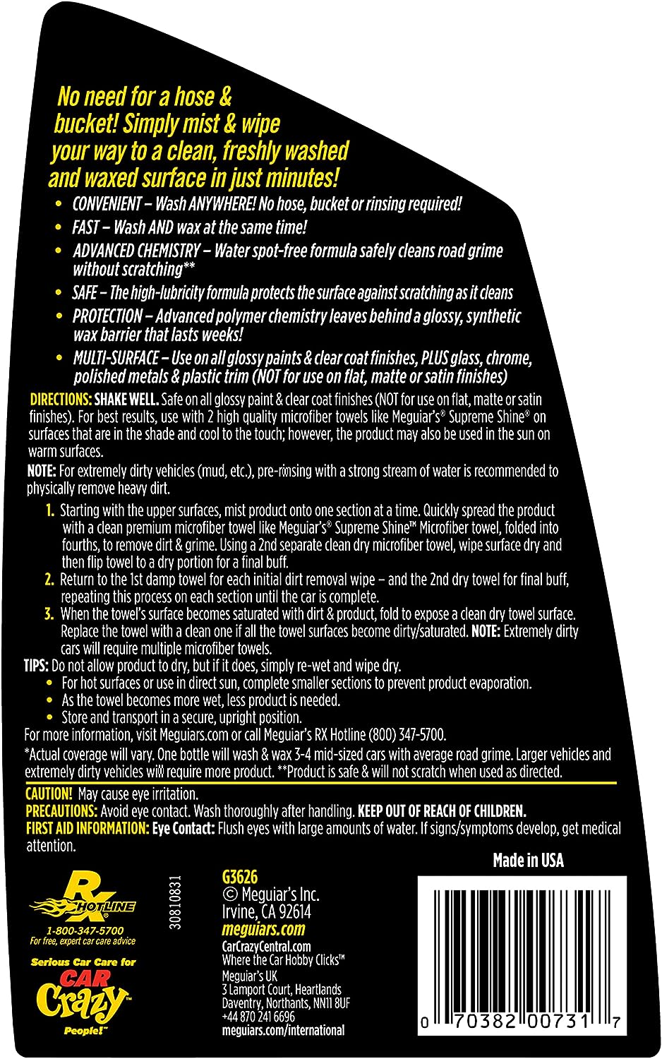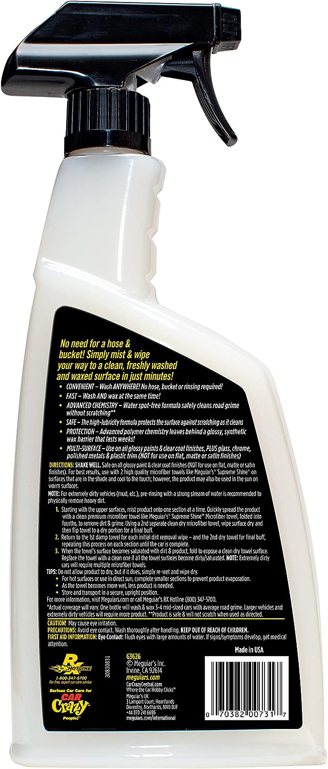 Meguiar's Ultimate Waterless Wash & Wax - Scratch-Free Waterless Car Wash That Makes Car Detailing Quick and Easy - 26 Oz