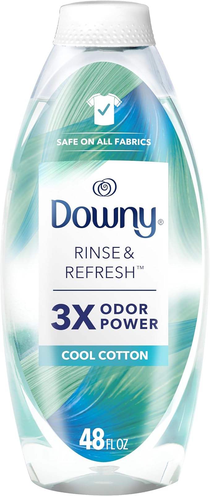 Downy Rinse & Refresh Laundry Odor Remover And Fabric Softener, Cool Cotton, 48 Fl Oz, HE Compatible Laundry Sanitizer, Safe On All Fabrics