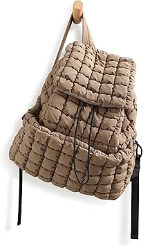 ODODOS Quilted Backpack for Women Lightweight Puffer Hiker Pack Drawstring Padding Travel Gym Bag, Brown