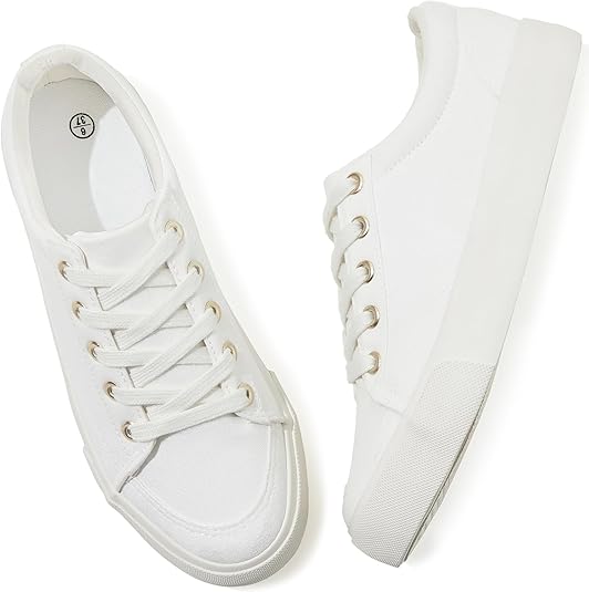 Adokoo Sneakers for Women Canvas Low Top Lace Up Shoes White Fashion Tennis Sneakers Cute Casual Comfort Walking Shoes