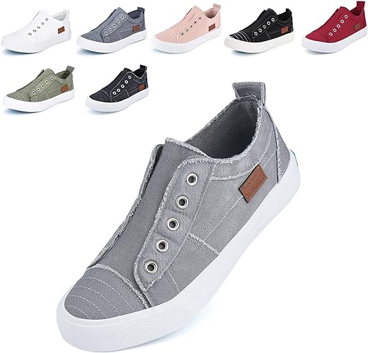 JENN ARDOR Women's Slip On Fashion Sneakers No Laces Comfortable Casual Low Canvas Sneakers Flats Walking Shoes