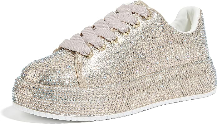 LUCKY STEP Rhinestone Sneakers for Women Platform Sparkly Glitter Bling Tennis Shoes Fashion Bedazzled Wedding Bridal Party Walking Sneakers