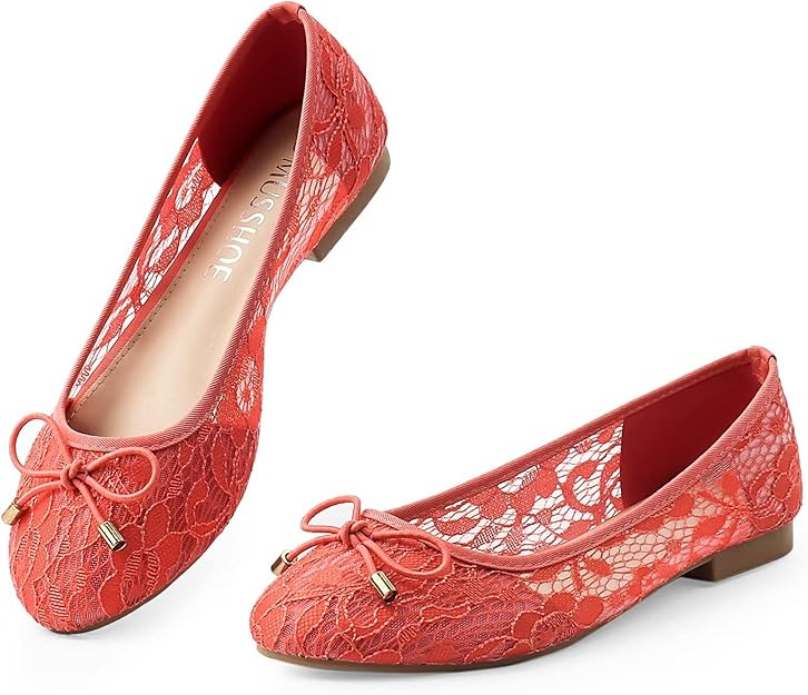 MUSSHOE Flats Shoes Women Comfortable Bowknot Lace Breathable Ballet Flats for Women