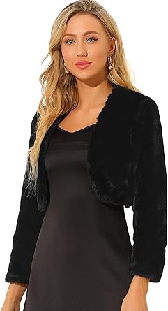 Allegra K Women's Christmas Cropped Jacket Evening Open Front Bolero Faux Fur Shrug