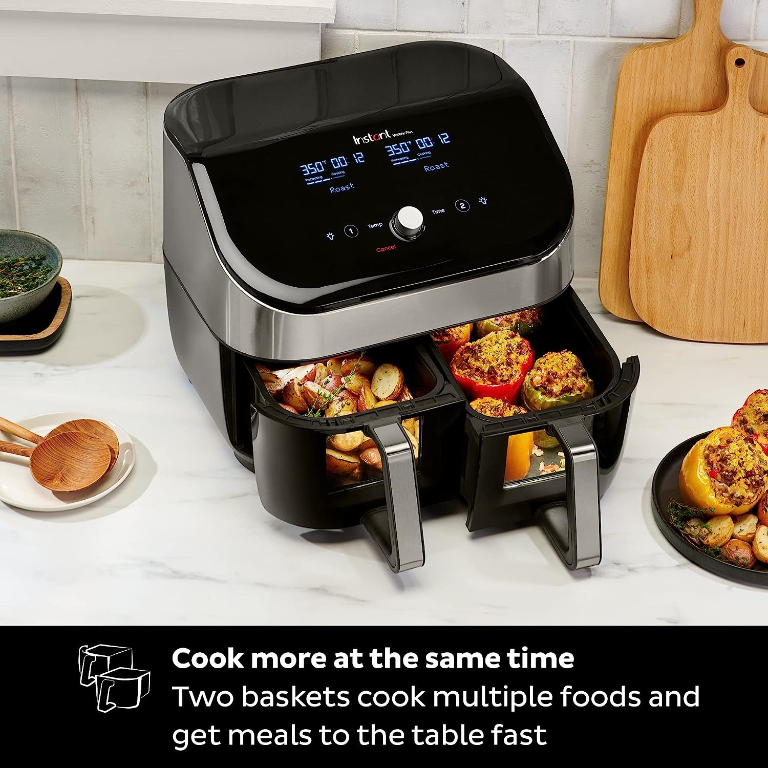 Instant Vortex Plus XL 8-QT Dual Basket Air Fryer Oven, From the Makers of Instant Pot, 2 Independent Baskets, Clear Cooking Window, Dishwasher-Safe Basket, App with over 100 Recipes, Stainless Steel