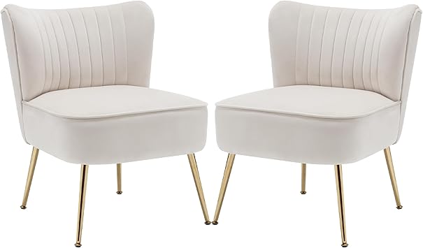 ABET Accent Chairs Set of 2, Velvet Armless Living Room Chairs with Tufted Wingback Thicken Cushion Gold Metal Legs, Comfy Upholstered Side Chairs Slipper Chairs Club Chairs for Bedroom, Beige