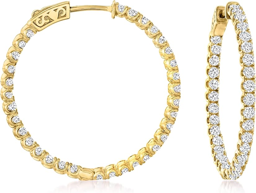 Ross-Simons 3.63 Ct. T.W CZ Inside-Outside Hoop Earrings in 18kt Gold Over Sterling