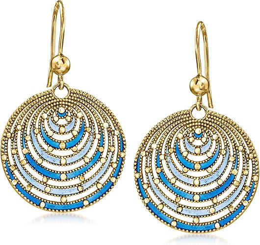 Ross-Simons Italian Blue Enamel Circle Drop Earrings in 18kt Gold Over Sterling