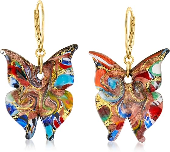 Ross-Simons Italian Multicolored Murano Glass Butterfly Drop Earrings With 18kt Gold Over Sterling