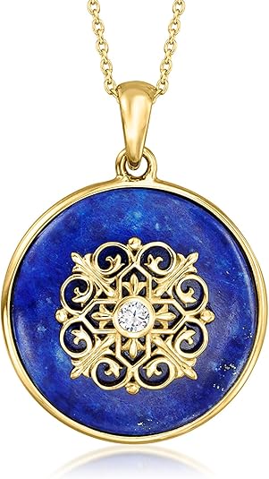 Ross-Simons Lapis and .10 ct. t.w. White Zircon Pendant Necklace in 18kt Gold Over Sterling. 18 inches