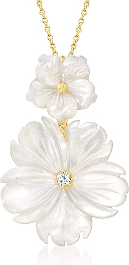 Ross-Simons Mother-Of-Pearl and .10 Carat White Topaz Flower Pendant Necklace in 18kt Gold Over Sterling. 16 inches