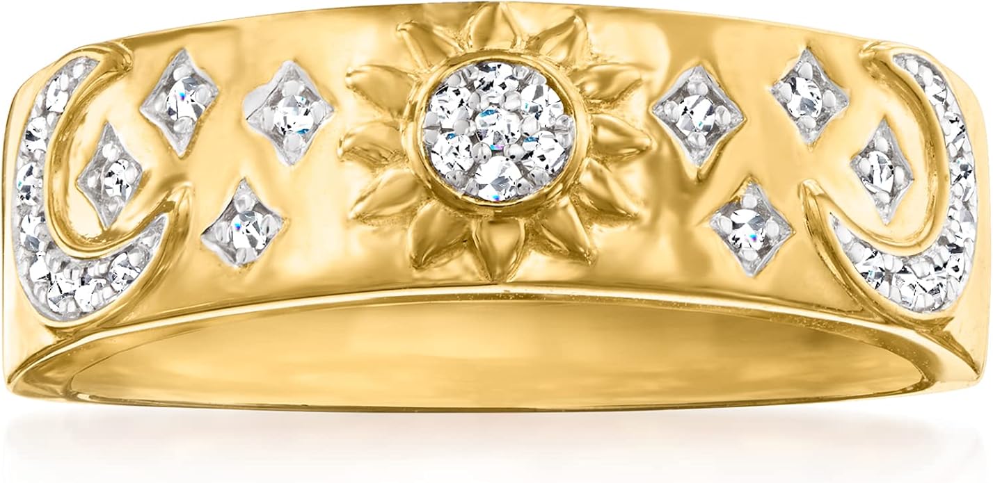 Ross-Simons 0.10 ct. t.w. Diamond Moon, Sun and Star Ring in 18kt Gold Over Sterling