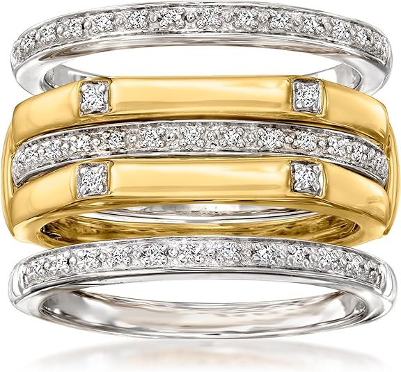Ross-Simons 0.15 ct. t.w. Diamond Jewelry Set: 4 Stackable Rings in Sterling Silver and 18kt Gold Over Sterling