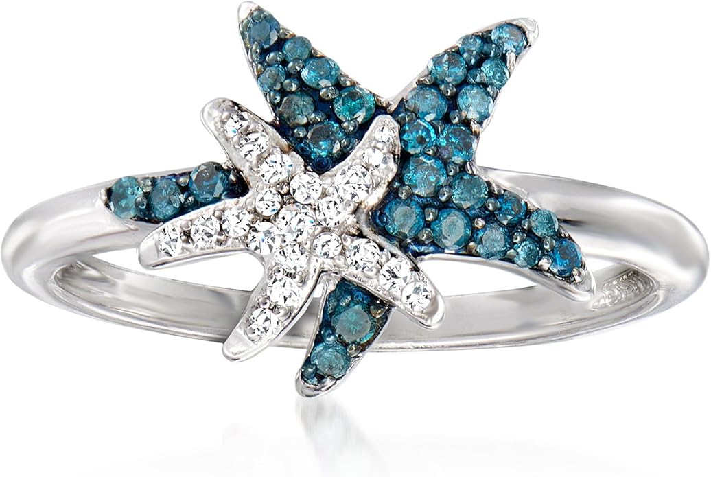 Ross-Simons 0.25 ct. t.w. Blue and White Diamond Starfish Ring in Sterling Silver