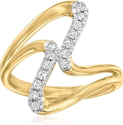 Ross-Simons 0.25 ct. t.w. Diamond Double-Wave Ring in 18kt Gold Over Sterling