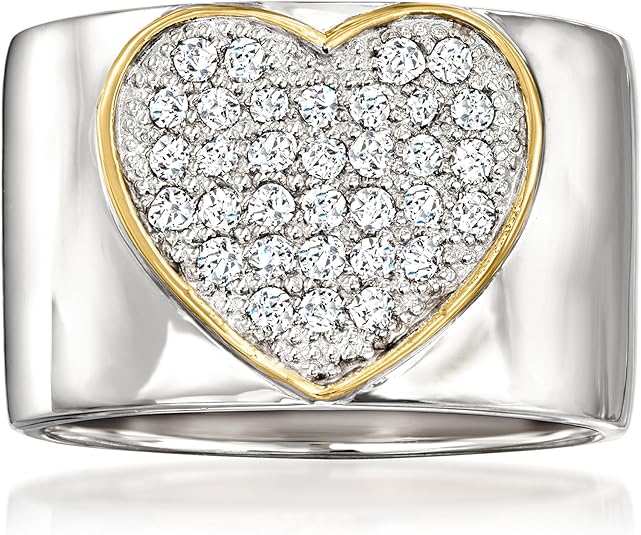 Ross-Simons 0.50 ct. t.w. Pave Diamond Heart Ring in Sterling Silver With 14kt Yellow Gold