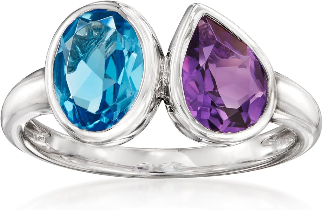 Ross-Simons 1.20 Carat Swiss Blue Topaz and .80 Carat Amethyst Toi Et Moi Ring in Sterling Silver