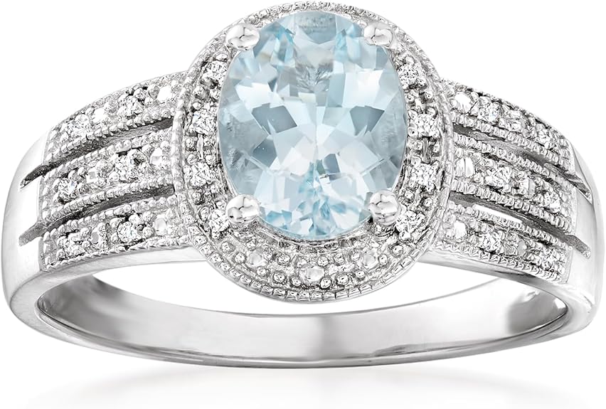 Ross-Simons 1.50 Carat Aquamarine Ring With Diamond Accents in Sterling Silver