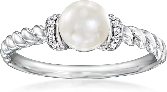 Ross-Simons 5.5-6mm Cultured Pearl Ring With Diamond Accents in Sterling Silver