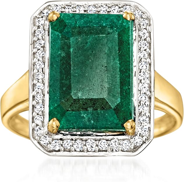 Ross-Simons 5.50 Carat Emerald and .20 ct. t.w. Diamond Ring in 14kt Yellow Gold