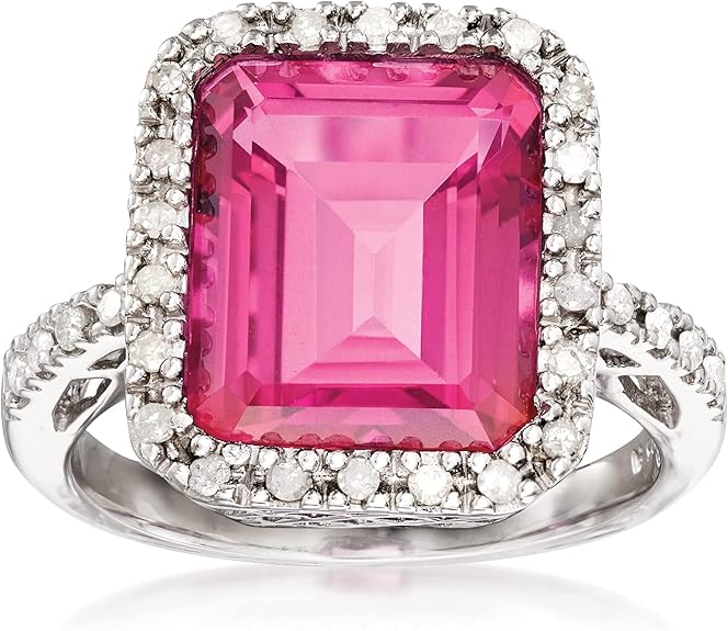 Ross-Simons 6.50 Carat Pink Topaz and .25 ct. t.w. Diamond Ring in Sterling Silver