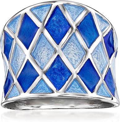 Ross-Simons Italian Blue Enamel Harlequin Ring in Sterling Silver