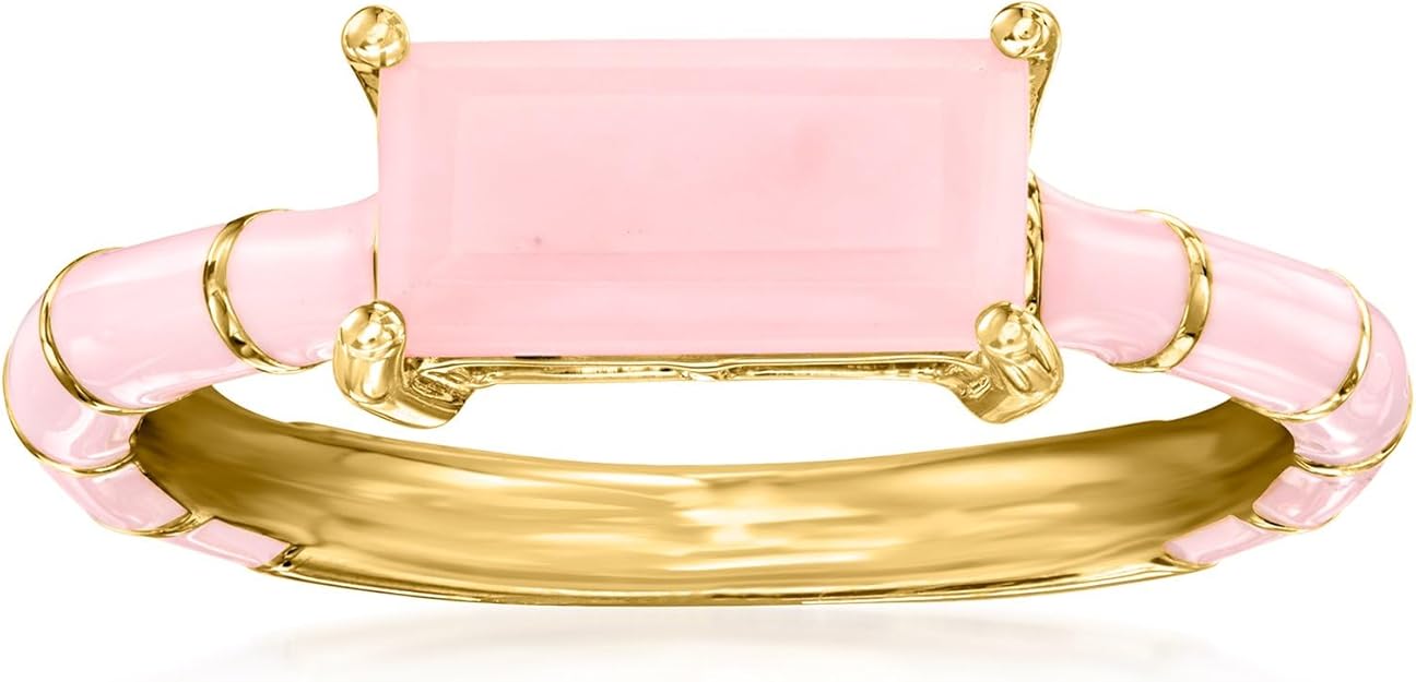 Ross-Simons Pink Opal and Pink Enamel Ring in 18kt Gold Over Sterling