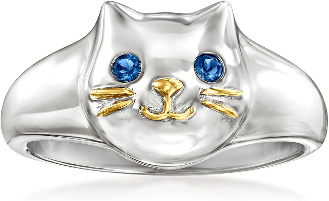Ross-Simons Sterling Silver Cat Ring With 18kt Gold Over Sterling and London Blue Topaz Accents