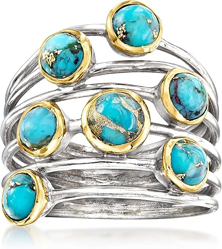 Ross-Simons Turquoise Highway Ring in Sterling Silver and 18kt Gold Over Sterling