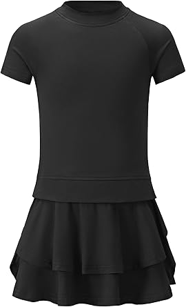 Little Girls 2PCS Short Sleeve Golf Tennis Sports Tops with Skirts Sets Athletic Active Dress with Pockets Shorts
