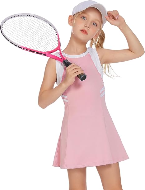 Zaclotre Girls Tennis Dress Cute Golf Outfit Sleeveless Workout Athletic Dresses with Shorts Pockets