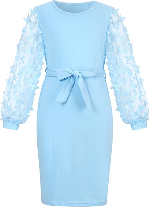 ALISISTER Girls Dresses Mesh Puff Long Sleeve Dress with Butterflies 7-14 Years