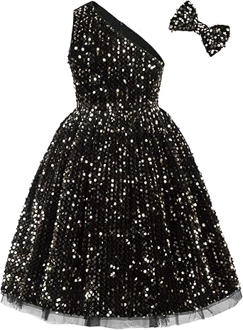 GRACE KARIN Girls Sequin Dress One Shoulder Wedding Party Gown with Hair Bow 5-12Y
