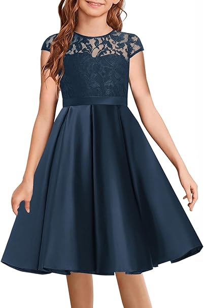 HOSIKA Elegant Flower Girls Dress Lace Satin A-Line Bridesmaid Princess Dresses for Wedding Birthday Party
