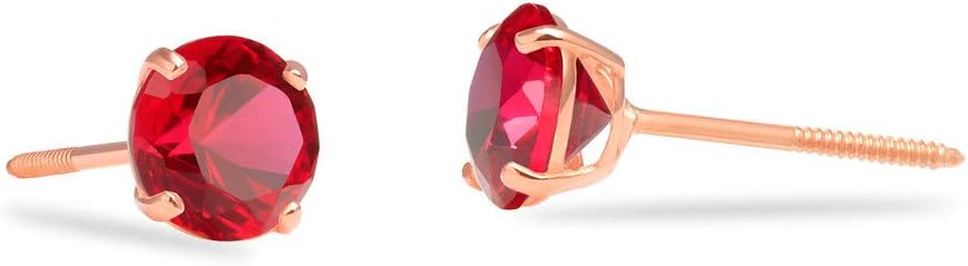14K Gold Round Simulated Ruby CZ Stud Screw Back Earrings | 0.030-4.00 CTW | Yellow, Rose & White Gold