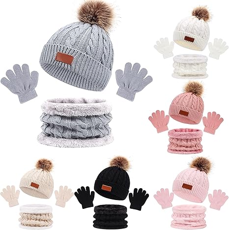 18 Pcs Baby Winter Hat Scarf Gloves Set Kids Winter Hats Winter Knit Beanies Neck Warmer Gaiter Scarf Infant Hat and Mitten Set for Boys Girls Gift, 1-5 Year