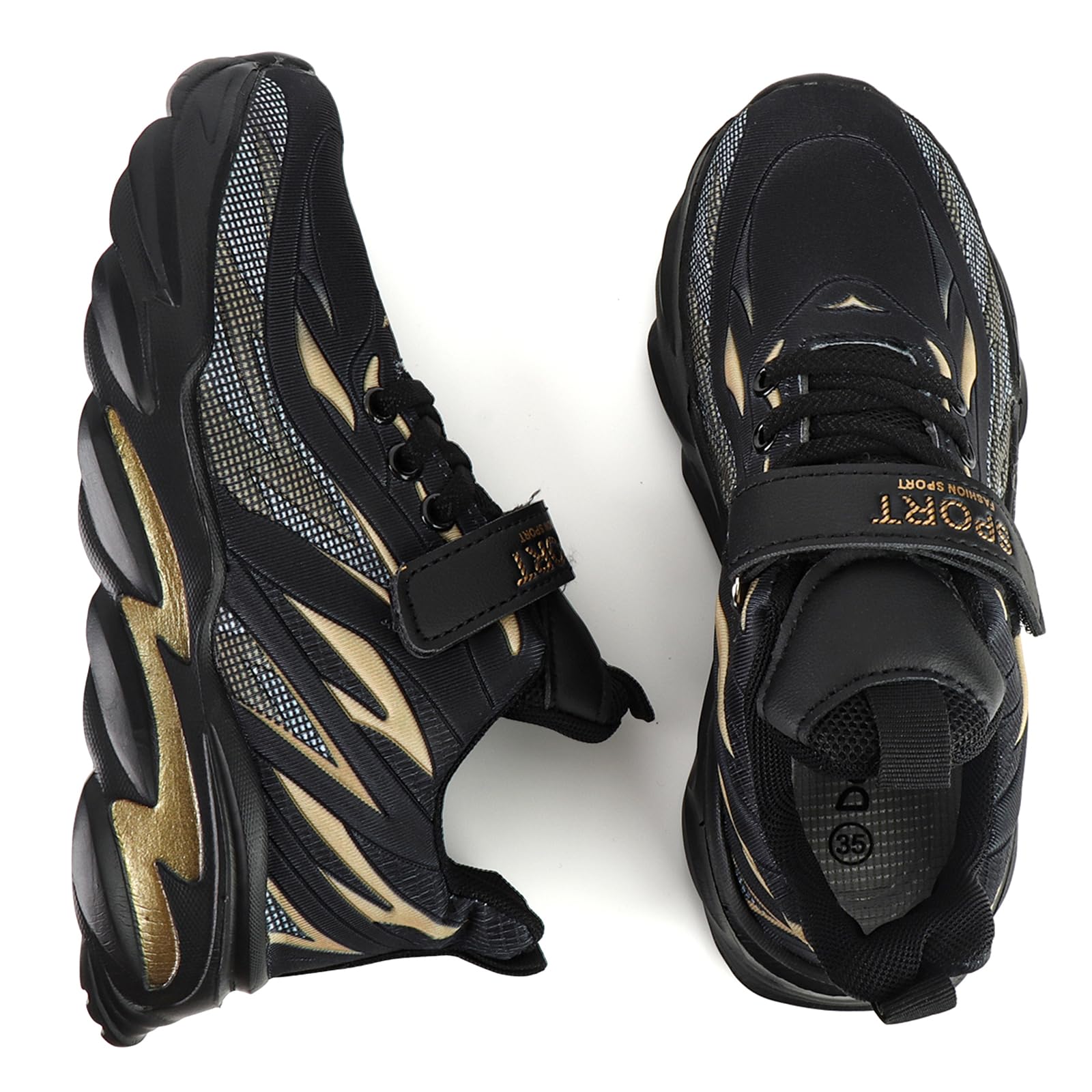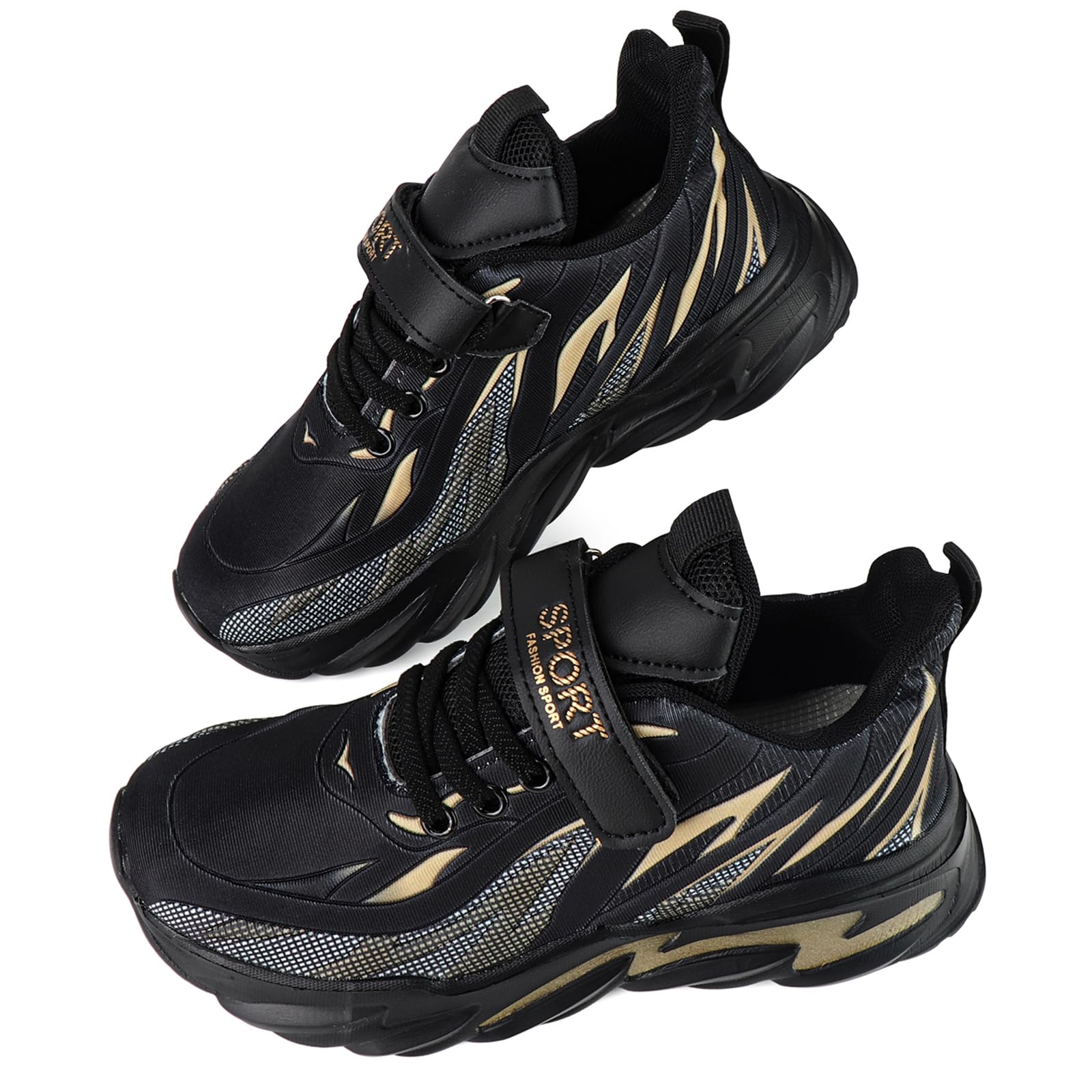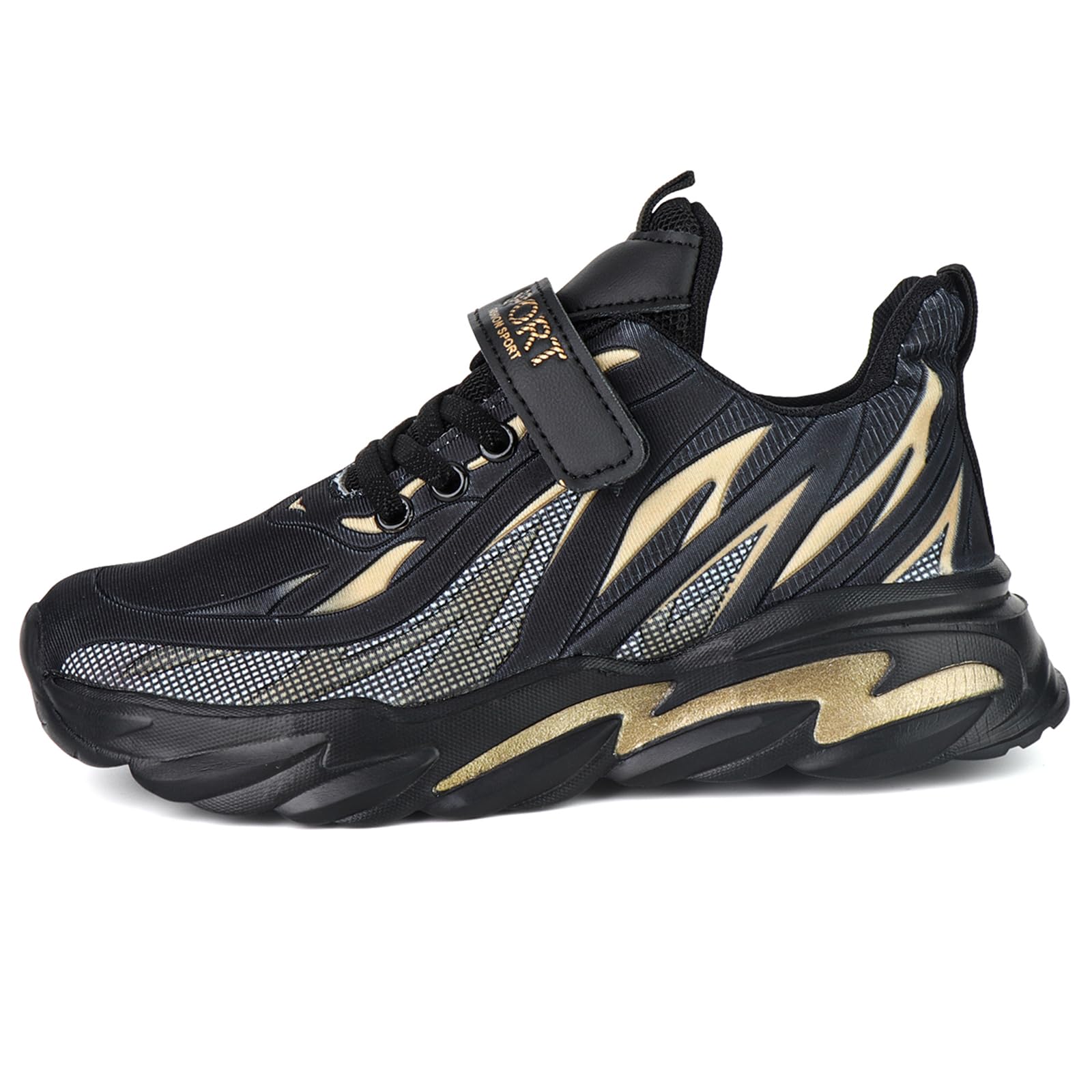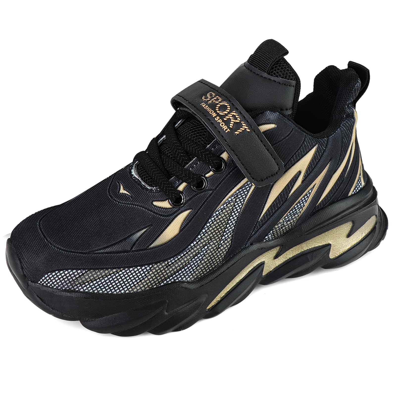 m1&m2 Kids Breathable Boys Sports for Girls Casual Soft Soled Basketball Running Shoes Black Gold 1 Big Kid
