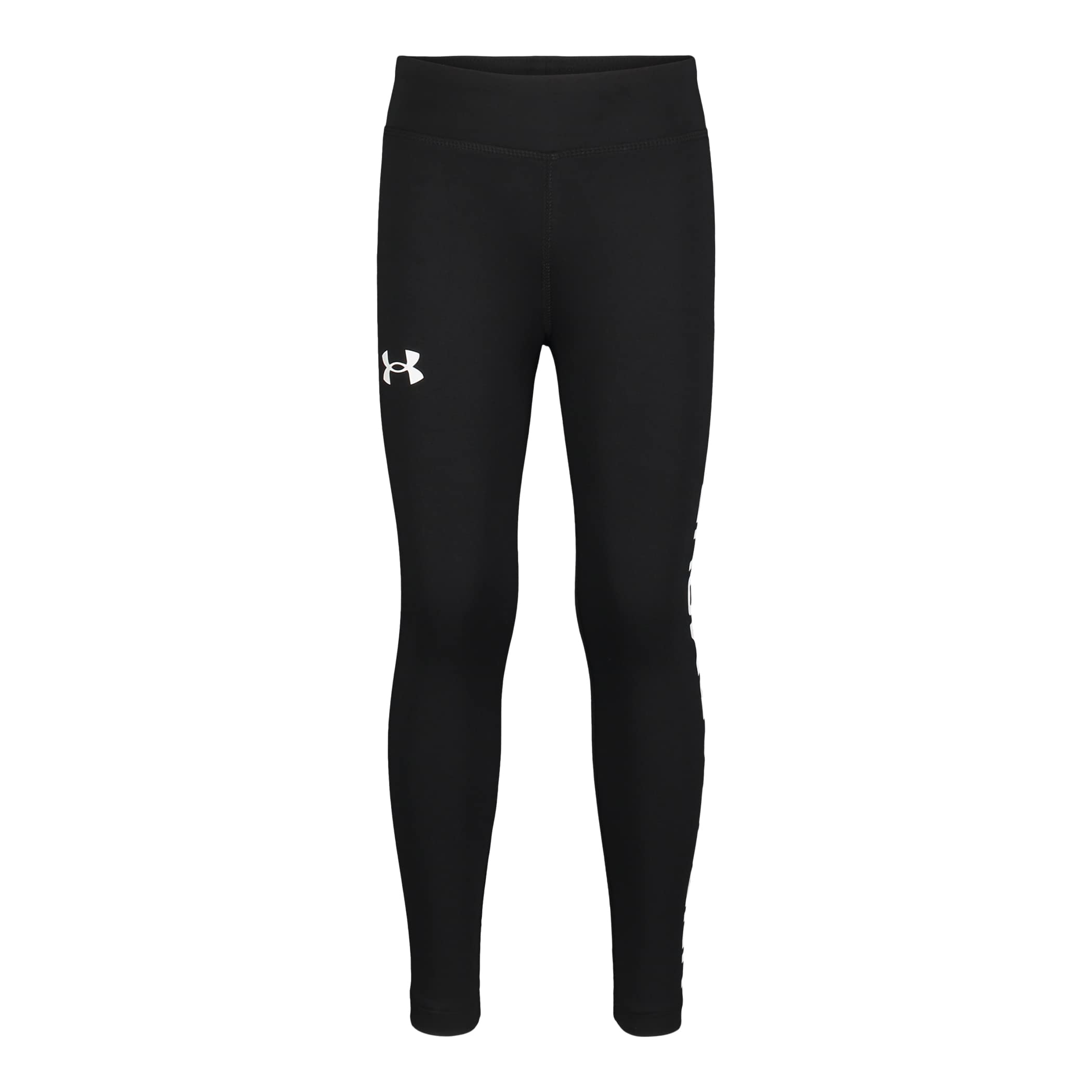 Under Armour Girls' Leggings, Printed Designs, Lightweight, Stretch Fit and Durable, Black Wordmark-CORE, 6X