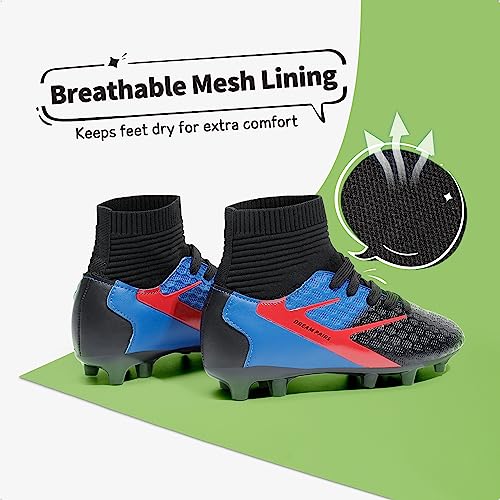 DREAM PAIRS Boys Girls HZ19002K Soccer Football Cleats Shoes Black Royal Blue RED Size 3 Little Kid