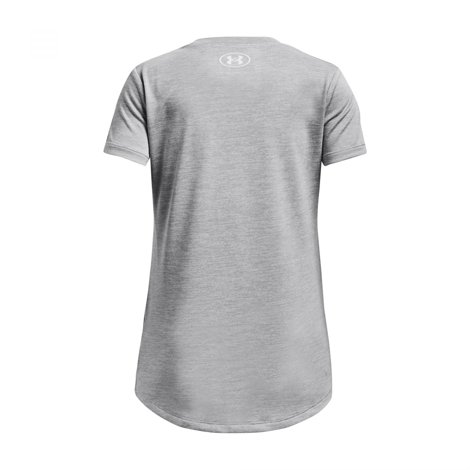Under Armour Girls' Standard Tech Big Logo Twist Short Sleeve T Shirt, (011) Mod Gray / / White, X-Large