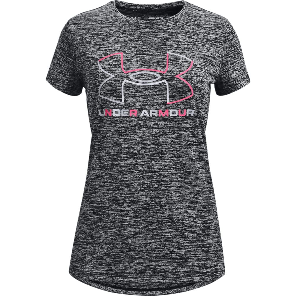 Under Armour girls Tech Big Logo Twist Short Sleeve T-Shirt , Black (001)/Cerise , Youth Large