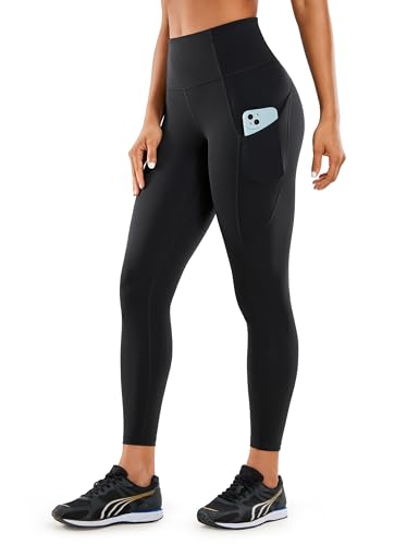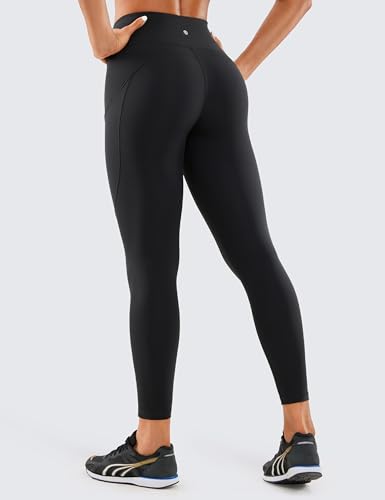 CRZ YOGA Women's Naked Feeling Workout Leggings 25 Inches - High Waisted Yoga Pants with Side Pockets Athletic Running Tights Black Medium