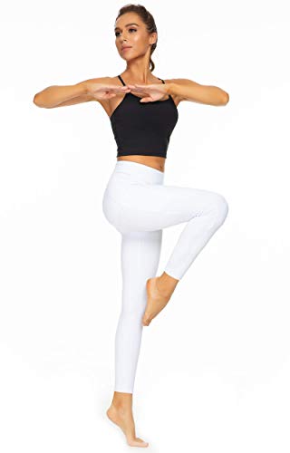 Kcutteyg Yoga Pants for Women with Pockets High Waisted Leggings Workout Sports Running Athletic Pants (White, Large)