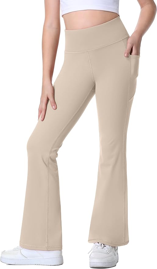 IUGA Girls Flare Leggings High Waist Cute Preppy Clothes for Girls Uniform Pants with Pockets Bell Bottom Pants