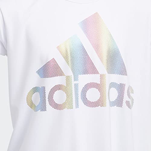 adidas Girls' Big Short Sleeve Scoop Neck Tee T-Shirt, White BOS Foil Rainbow, Large