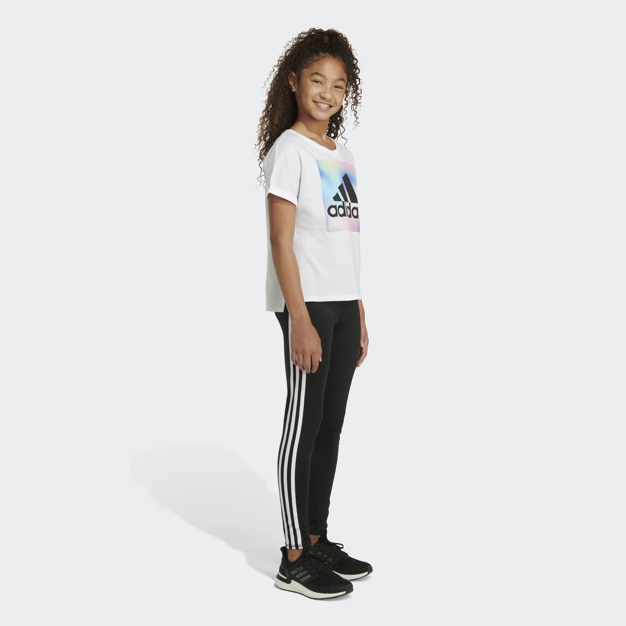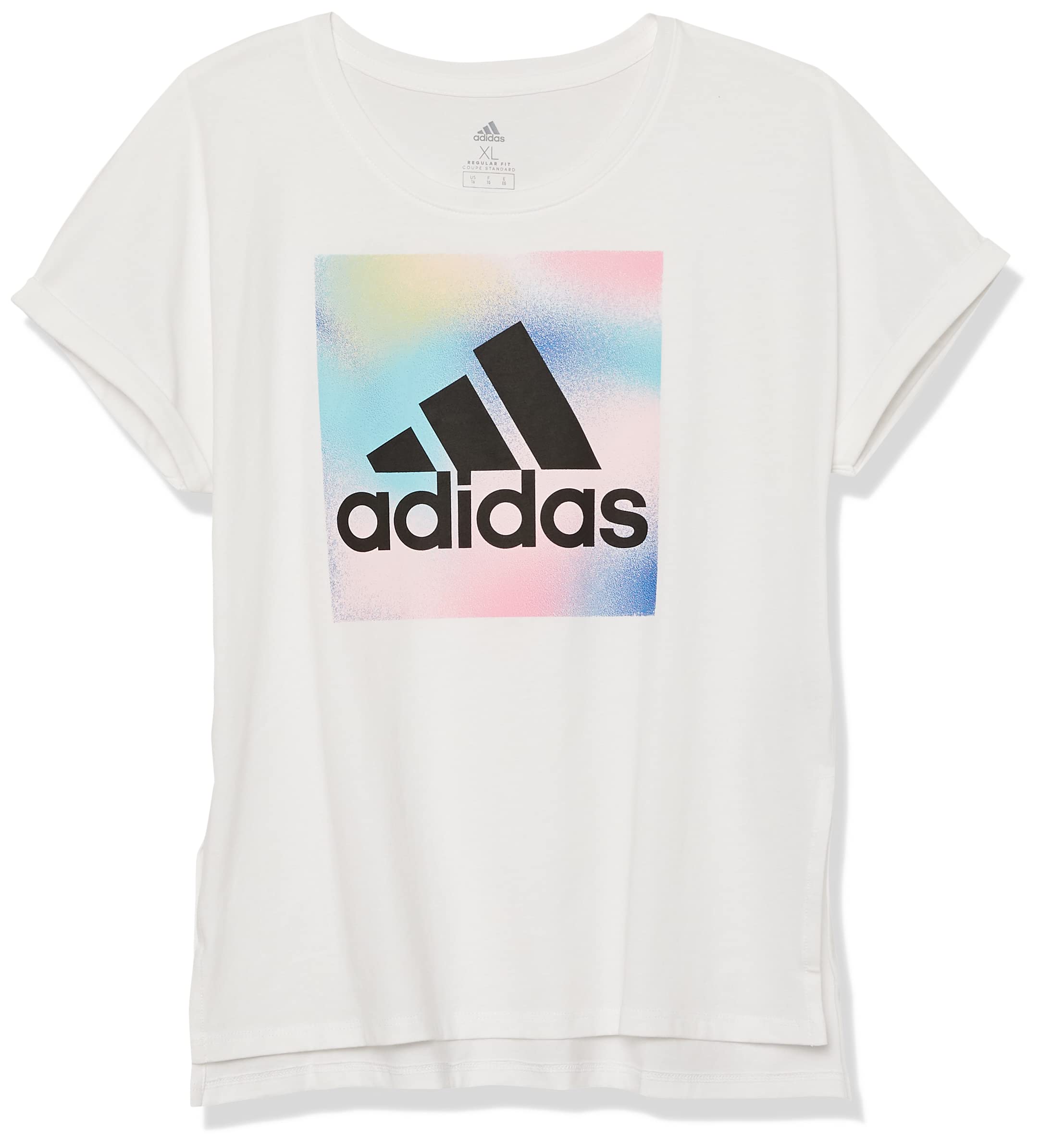 adidas Girls' Short Sleeve Graphic Tee, White/Light Pink, Medium (10/12)