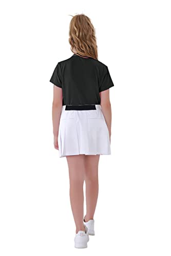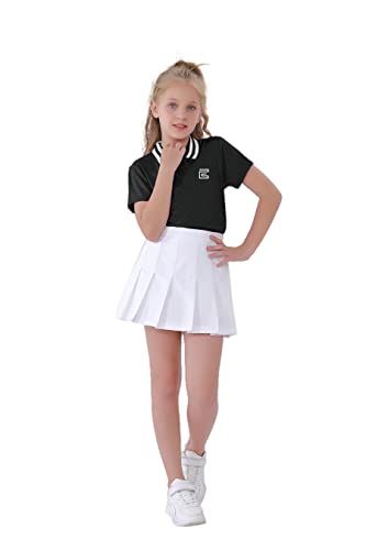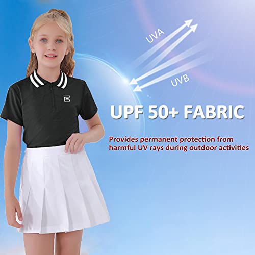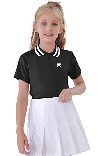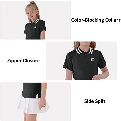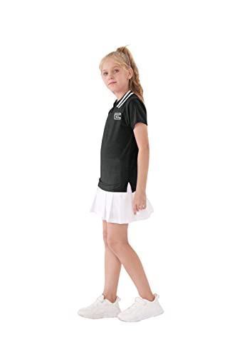 EXARUS Girls' Golf Tennis Polo Shirts Kids V-Neck Athletic Workout Moisture Wicking Quick Dry UPF 50+ Black 10 Years