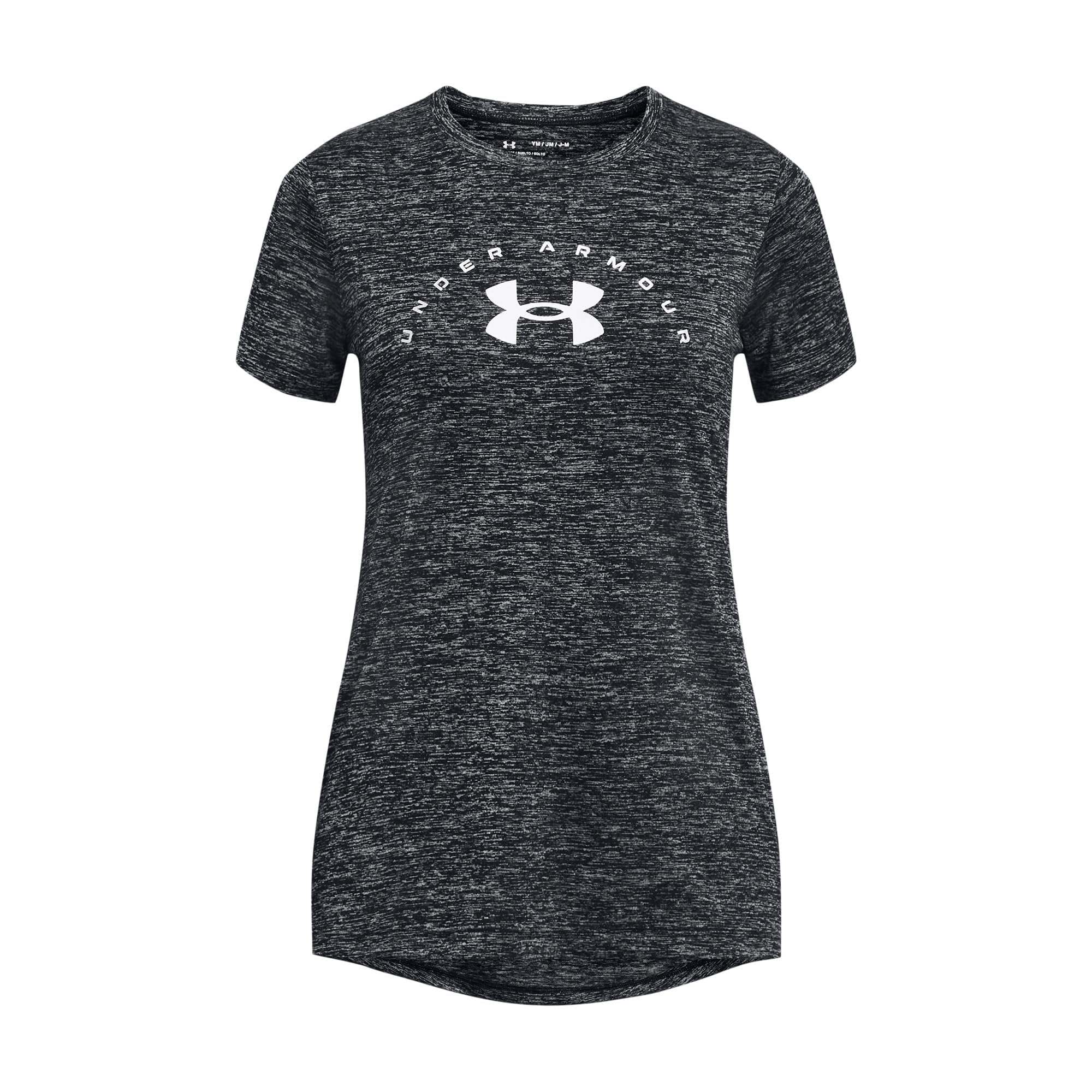 Under Armour Girls' Standard Tech Twist Arch Big Logo Short-Sleeve Crew Neck T-Shirt, (003) Black / / White