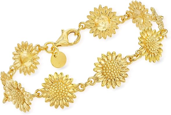Ross-Simons Italian 18kt Gold Over Sterling Sunflower Bracelet. 7 inches