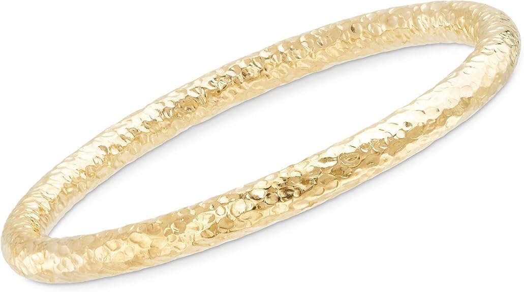 Ross-Simons Italian 18kt Yellow Gold Over Sterling Silver Hammered Bangle Bracelet. 8.5 inches